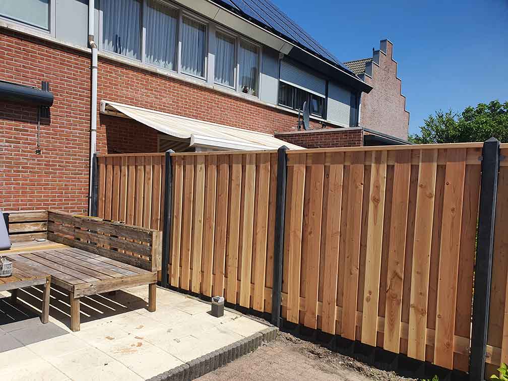 Hout is een ontzettend veelzijdig materiaal dat ideaal is voor schuttingen. Het heeft een natuurlijke uitstraling, is makkelijk te bewerken en komt in allerlei kleuren. Kiest u voor een volledig houten schutting, dan moet u er wel rekening mee houden dat hout wat onderhoud nodig heeft. Onderhoud aan een schutting is echt nodig. Wanneer u dit niet consequent onderhoudt heeft u kans dat het minder lang goed en mooi blijft, we adviseren u daarom om uw houten schutting regelmatig te laten lakken en/of beitsen. dit altijd mee te nemen in uw overweging. Goed behandelde en onderhouden schuttingen gaan jarenlang mee.